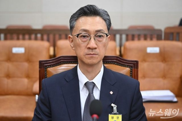 고정욱 롯데지주 사장이 13일 오후 서울 여의도 국회 기획재정위원회에서 열린 기획재정부(경제·재정정책)에 대한 2025년도 국정감사에 증인으로 출석해 자리하고 있다. 사진=강민석 기자 kms@newsway.co.kr