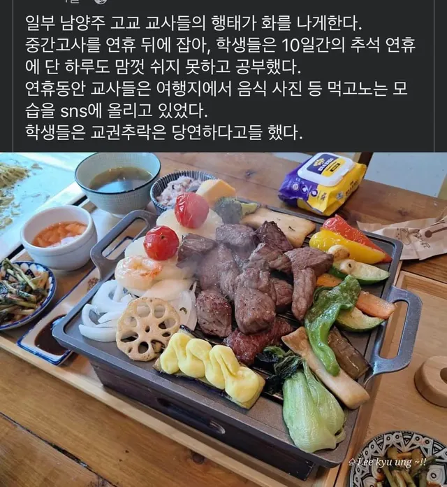 죽어라공부하는데 감히 선생님이 편하게 먹고 놀고있다니라며 분노표출