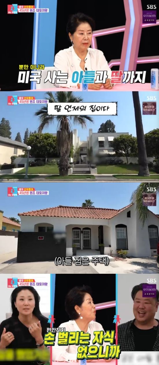 특히 최근 미국에 사는 아들과 딸의 집을 방문한 영상이 화제를 모았는데, 이에 김구라는 "편안하시겠어요"라면서 웃었다. 자식 농사가 대박이 난 선우용여는 "선 벌리는 자식들이 없으니까 편해"라면서 행복해했다.