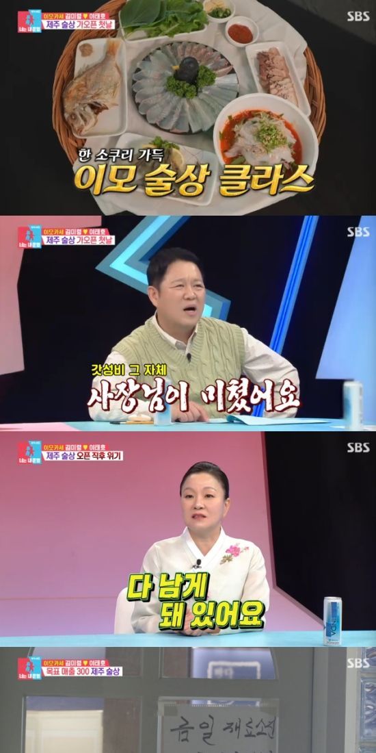 13일 방송된 SBS 예능 프로그램 '동상이몽2 - 너는 내 운명'에서는 '이모카세' 김미령의 제주도 식당 개업기가 공개됐다. 스페셜 MC로는 선우용여가 출연했다.