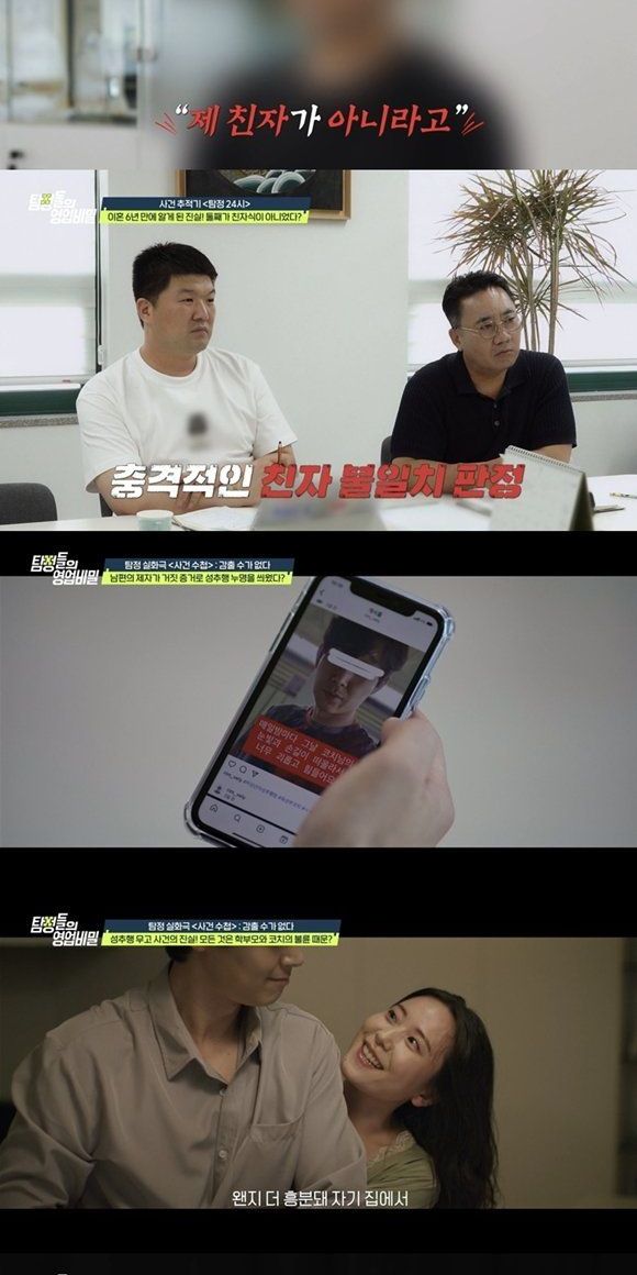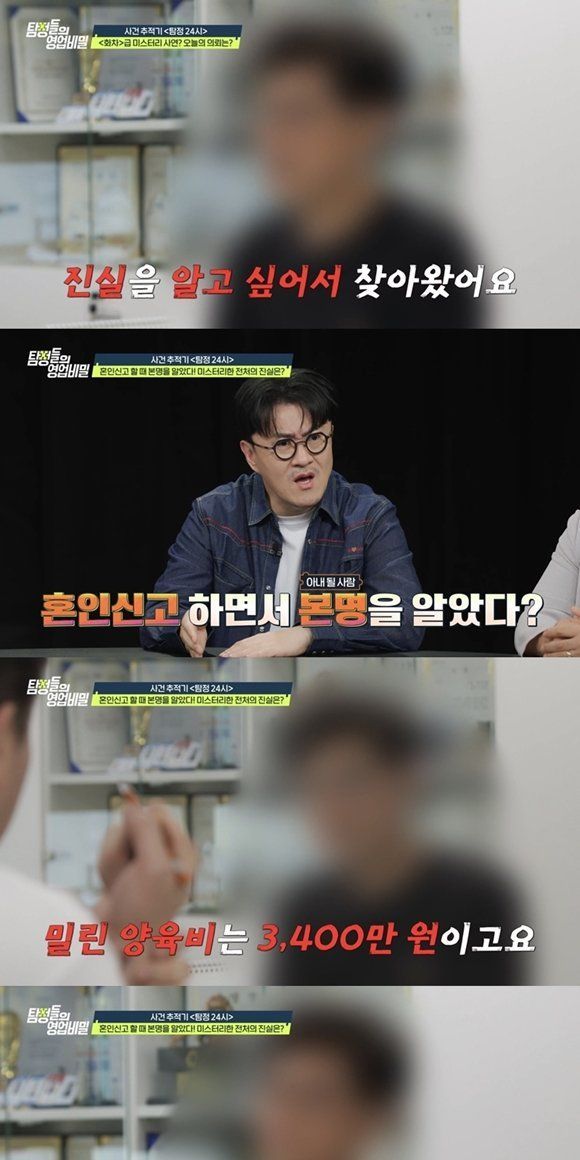 지난 13일 방송된 채널A ‘탐정들의 영업비밀’ 속 ‘탐정 24시’에서는 “6년 전 이혼한 전처의 진실을 알고 싶다”는 남성 의뢰인이 등장했다. 의뢰인은 “전처가 결혼식에도 가족을 부르지 않았고, 혼인신고할 때서야 본명을 알았다”며 의문투성이였던 결혼생활을 고백했다. 심지어 외출과 외박을 일삼던 전처는 미혼인 척 다른 남자와 술자리를 즐기고, 의뢰인 몰래 수천만 원의 빚까지 졌다. 결국 이혼 후 두 아이를 홀로 키워온 의뢰인은 “전처로부터 3,400만 원의 양육비도 받지 못했다”고 호소했다. 그런데 최근 유전자 검사 결과, 둘째 아이가 친자가 아니라고 밝혀지며 의뢰인은 더 큰 충격에 휩싸였다.