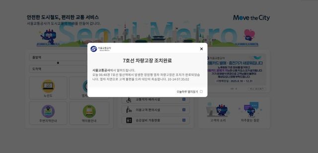 고장은 약 40여 분 뒤 조치가 완료돼 오전 7시35분쯤부터 운행이 재개됐다. 교통공사는 “열차 지연으로 불편을 끼쳐 죄송하다”며 “정확한 고장 원인은 현재 파악 중”이라고 밝혔다.
