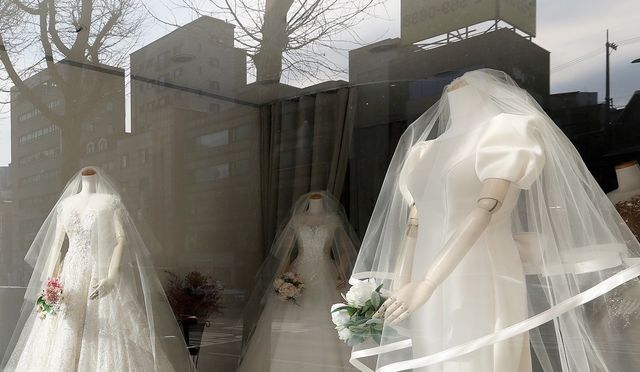 한 웨딩타운 드레스샵에 웨딩드레스가 전시돼 있다. 기사 이해를 돕기 위한 자료 사진 / 뉴스1