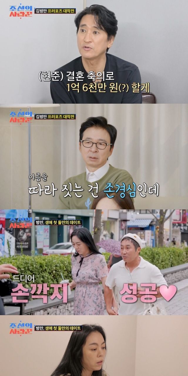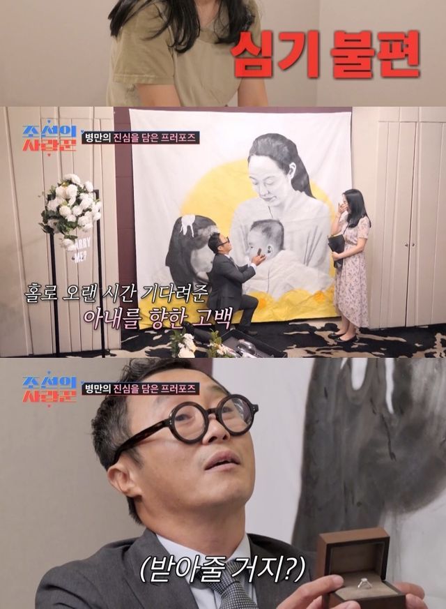 이를 VCR로 지켜본 사랑꾼 MC들도 눈시울이 붉어진 가운데, 김병만은 반지 상자를 열고 프러포즈의 대미를 장식했다. 김병만의 아내는 "결혼 전에 오빠가 '뭘 살다가 결혼하면서 그런 걸 하냐'고 해서 생각도 못 했다. 그동안의 시간을 한꺼번에 보상받는 느낌이다"라며 감동의 눈물을 흘렸다.
