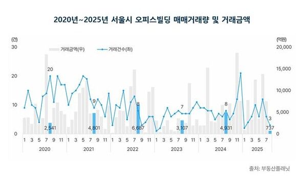 뉴시스 보도에 따르면, 상업용 부동산 전문 프롭테크 기업 부동산플래닛은 14일 발표한 2025년 8월 서울시 오피스 매매 및 임대시장 동향 보고서를 통해 이같이 밝혔다.