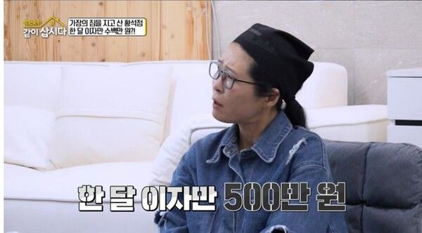홍진희가 "한 달에 얼마씩 내냐"고 묻자 황석정은 "한 달 이자만 500만원"이라고 답해 모두를 놀라게 했다.