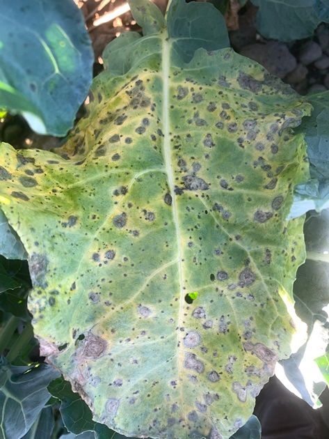 브로콜리 잎에 발생한 검은무늬병. 제주도 농업기술원 제공