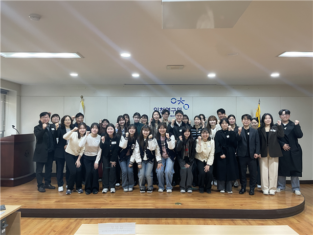 ▲ 지난 29일 인천연구원 대강당에서 '2025 인천광역시 탄소중립 청년 서포터스' 발대식에서 참가자들이 기념촬영을 하고 있다(사진제공=인천시청)