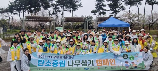 ▲ 한국남동발전의 후원과 비영리 NGO 단체 온해피 주관으로 인천 중구 영종하늘도시 10호 근린공원에서 19일 탄소중립 실천을 위한 나무심기 행사가 성황리에 개최됐다.