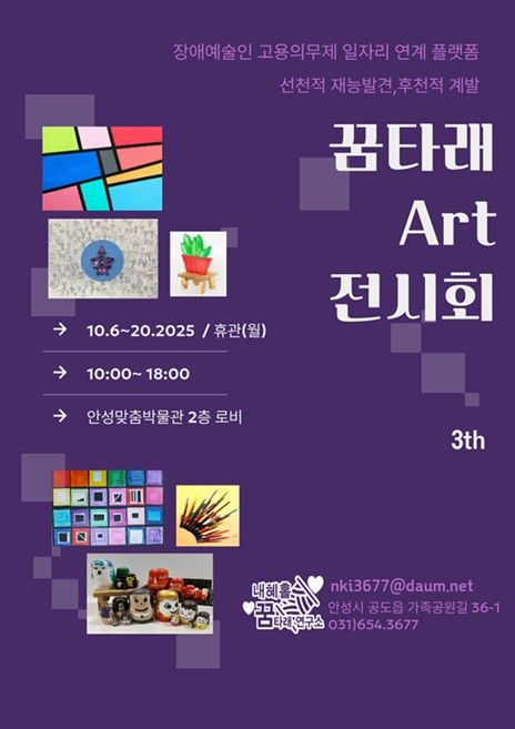 안성시 청소년 발달장애인들이 참여한 ‘꿈타래 Art 전시회’가 10월 6일 월요일부터 안성맞춤박물관 2층 로비에서 진행되고 있다.
