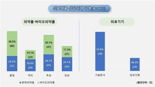이번 상담사례집에는 '혁신제품 사전상담'을 통해 지난해 8월부터 올해 7월까지 최근 1년간 상담한 내용으로 의약품 141건, 바이오의약품 156건, 의료기기 분야 기술문서 28건, 임상시험(통계 포함) 24건 상담사례가 포함됐다.
