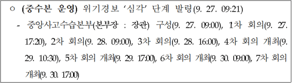 그럼에도 문체부는 중대본에 제출한 보고서에 ‘차관주재, 사고수습본부 0차 회의(서면) 개최’이라고 기재해 텔레그램 대회를 서면 회의로 둔갑시켰다. 단순한 보고 오류가 아니라 공식 보고서에 허위 사실을 기재한 명백한 ‘거짓 보고’ 행위다.