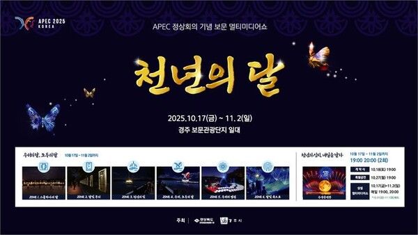 뉴시스 보도에 따르면, 이번 행사는 경북과 경주시가 주최하고 APEC 준비지원단이 주관하며 이지위드와 덱스터스튜디오가 공동으로 시행한다. 보문 멀티미디쇼 '천년의 달'은 'APEC KOREA'의 주제인 연결(Connect)·혁신(Innovate)·번영(Prosper)을 빛과 음악, 기술로 표현한 초대형 야외 미디어아트 쇼다.