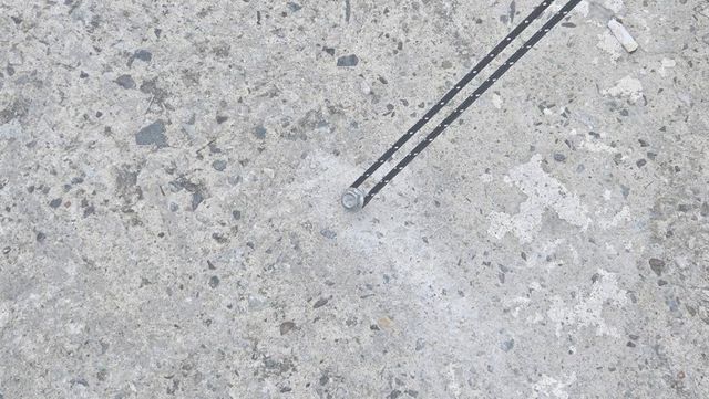 텐트 설치를 위해 콘크리트 바닥에 박은 쇠말뚝. / 보배드림