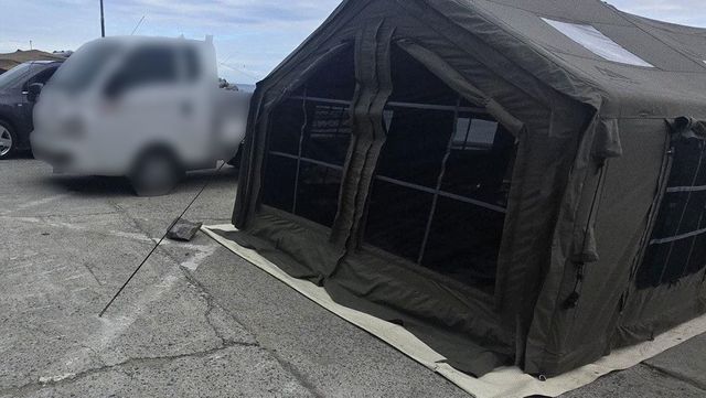 어항구역에 설치된 캠핑용 대형 텐트. / 보배드림