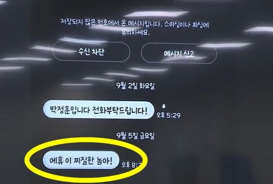 김 의원이 공개한 사진에 따르면 박 의원은 지난달 2일 오후 5시 29분에 “박정훈입니다 전화 부탁 드립니다”라고 문자메시지를 보냈다. 이후 답장이 없자 같은 달 5일 오후 8시 37분에 “에휴 이 찌질한 놈아”라고 한 차례 더 문자메시지를 보냈다.