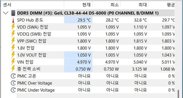 RAM: GeIL DDR5-6000 CL38 GEMINI RGB Gray 패키지 32GB(16Gx2)