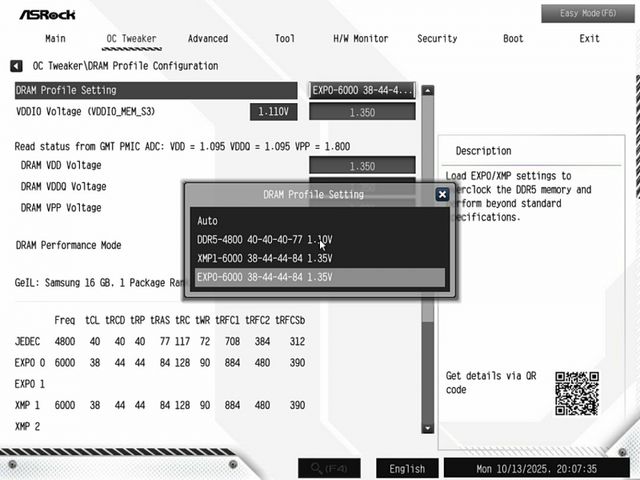 속도: 6000MHz (PC5-48000) / CL38-44-44-84 / 1.35V