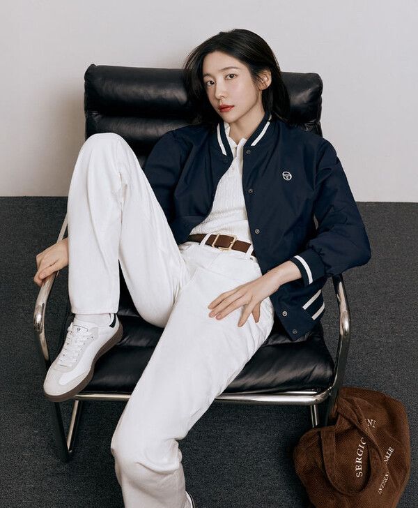 사진 속 박지현은 의자에 비스듬히 앉아있다.