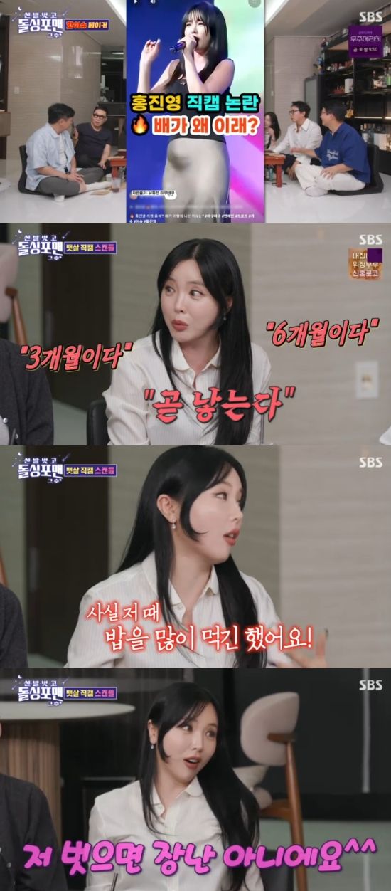 그리고 이날 홍진영은 최근에 논란이 된 뱃살 영상에 대해서도 해명을 했다. 홍진영은 "저 영상이 계속 양산이 되고 있다. 저 영상을 찍으신 분, 너무하다"면서 속상해했다.