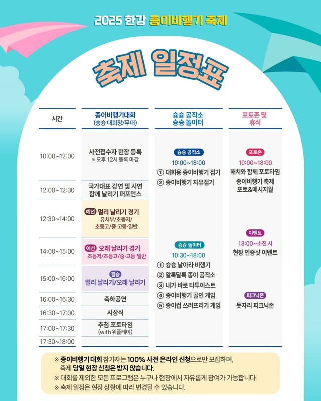 2025 한강 종이비행기 축제 세부일정 / 서울시 제공