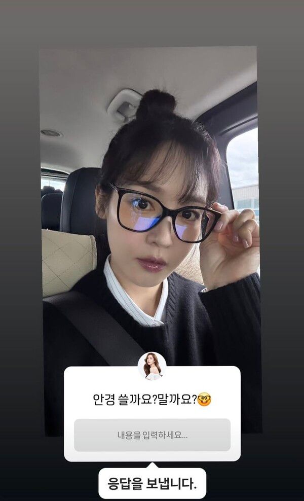 뉴시스 보도에 따르면, 성유리는 지난 14일 자신의 소셜미디어에 "안경을 쓸까요? 말까요?"라고 적고 한 장의 사진을 올렸다.