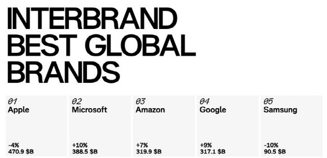 삼성전자는 2020년 이후 지금까지 아시아 기업으로는 유일하게 글로벌 5대 브랜드로서 위상을 유지하고 있다. 인터브랜드는 삼성전자를 두고 △전 사업 부문에서 인공지능(AI) 경쟁력 확보 △전 제품을 아우르는 AI 홈 경험 제공 △AI 반도체 집중 투자△고객 중심 브랜드 전략 수행 등이 긍정적인 영향을 끼쳤다고 평가했다.