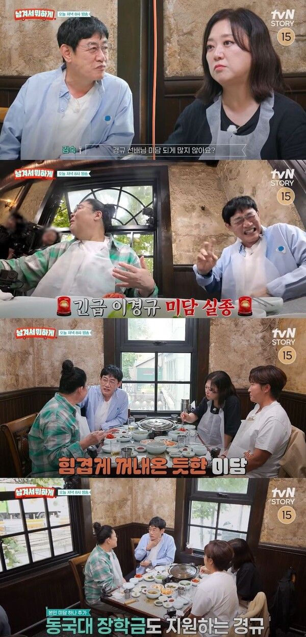 앞서 김숙은 "경규 선배님 미담 되게 많지 않냐"고 말한다. 답이 없자 이영자는 "어떻게 미담이 이렇게 없냐"고 한다.