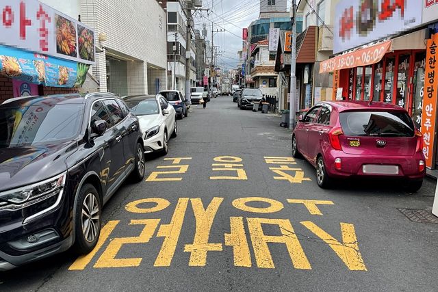 또 좁은 도로에 수시로 차량이 드나들면서 보행자들도 주정차된 차 사이로 잠시 몸을 피한 채 이동해야 했다.
