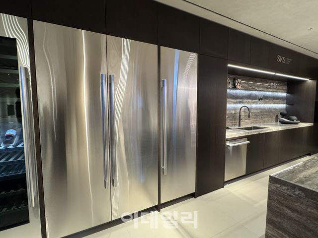 LG전자는 각각 다른 디자인과 인테리어로 구성된 총 5개의 SKS 전용 공간을 전시했다. 특히 고급 가전 브랜드와 협업해 주방 아일랜드부터 서랍장까지 빌트인 가전과 맞춤으로 구성된 주방 가구가 눈길을 끌었다. 전시 공간에는 무광·유광 패널을 선택할 수 있는 컬럼 냉장고, 최대 113병의 와인을 수납할 수 있는 컬럼 와인셀러를 비롯해 광파·스팀오븐, 식기세척기 등 다양한 제품이 마련돼 있었다. 고객 취향에 따라 원목, 천연 대리석, 블랙 앤 화이트 등 다양한 인테리어에 맞는 가전과 가구를 맞춤형으로 구성할 수 있다는 설명이다.