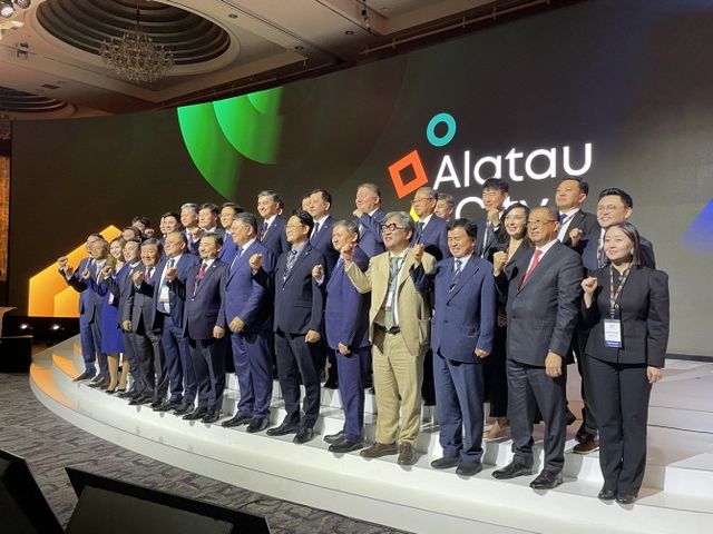 '알라타우 시티 글로벌 투자 로드쇼'에서 주요 참석자들이 기념 촬영을 진행했다. = 박선린 기자