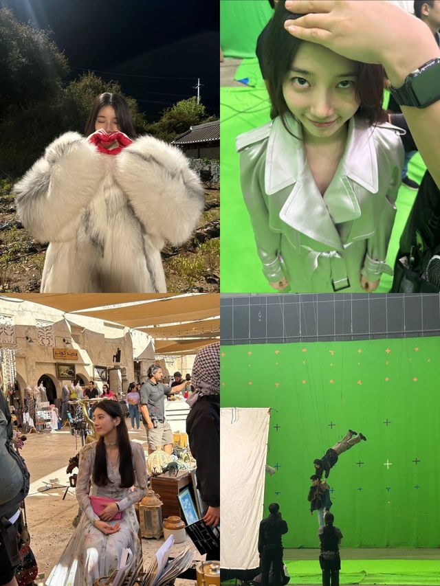 수지는 14일 자신의 SNS를 통해 여러 장의 사진을 게재하며 근황을 전했다. 공개된 사진 속 수지는 화려한 패션부터 촬영 현장의 모습까지 다채로운 매력을 드러냈다.