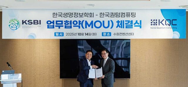 한국퀀텀컴퓨팅(KQC)이 한국생명정보학회(KSBI)와 양자컴퓨팅을 활용한 생명정보학 연구 협력을 위한 업무협약(MOU)을 체결했다. 협약은 양자컴퓨팅 기술을 생명정보학 분야에 본격 도입하는 국내 최초의 학회 차원 협력 사례로, 신약개발과 유전체 분석 등 AI바이오·디지털바이오 연구의 혁신적 전환을 목표로 한다.