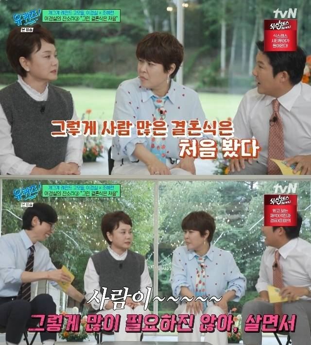 이경실은 "그렇게 사람 많은 결혼식은 처음 봤다"면서 "살면서 사람이 그렇게 많이 필요하지 않다"고 말했다.