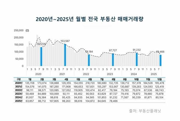 뉴시스 보도에 따르면, 16일 상업용 부동산 전문 프롭테크 기업 부동산플래닛이 발표한 2025년 8월 전국 부동산 유형별 매매시장 동향 보고서에 따르면, 전국 부동산 거래량은 7만8466건, 거래금액은 27조8509억원으로 전월(8만4645건, 31조6890억원) 대비 각각 7.3%, 12.1% 줄었다.