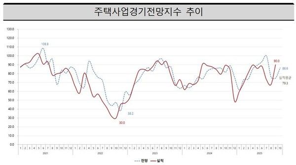 뉴시스 보도에 따르면, 16일 주택산업연구원이 주택사업자를 대상으로 설문 조사한 결과, 10월 주택사업경기 전망지수는 전월 대비 11.6포인트(p) 상승한 86.6으로 나타났다.
