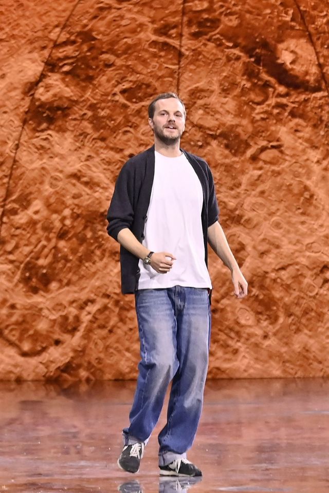 디올의 조나단 앤더슨, 샤넬의 마티유 블라지는 쌍둥이처럼 닮은 룩으로 피날레에 등장했습니다. 청바지와 화이트 티셔츠, 그리고 니트 톱인데요. 올타임 레전드 스타일답게 간절기에 휘뚜루마뚜루 활용 가능한 룩입니다. 조나단은 큰 키가 돋보이는 슬림한 실루엣을 연출했고, 마티유는 일하다 바로 뛰쳐나온 듯한 편안한 모습입니다. 둘의 스타일 킥은 모두 스니커즈네요.