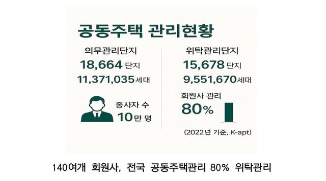공동주택은 대한민국 인구 절반 이상이 거주하는 대표 생활공간이다. 다만 그 관리 체계는 여전히 사각지대에 놓여 있다. 사고 책임은 관리주체에 집중되고 있지만, 정작 이를 보호할 제도적 장치는 미비한 현실이다. 더군다나 최근 중대재해처벌법 시행과 관리비 투명성 논란 그리고 고령화된 주거 환경 등 문제로 '관리 산업 전문화와 법제화' 요구가 커지고 있다.
