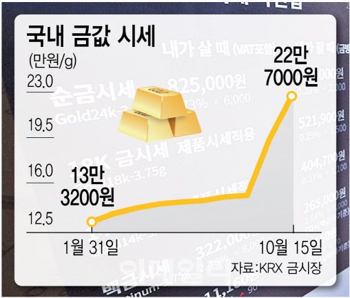 반면 골드바 제작과 판매를 주력으로 하는 업체들은 활황이다. 한 금거래소 관계자는 “1kg 골드바 구매는 3주 정도 기다려야 한다”며 “요즘은 2030세대를 중심으로 콩알금이나 1돈짜리 미니 골드바 주문이 늘고 있어 이것도 예약 대기를 걸어야 할 판”이라고 말했다.
