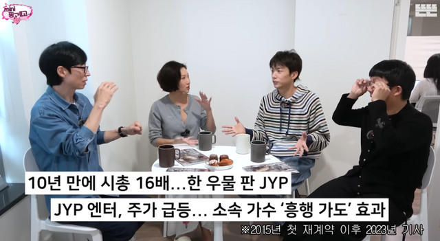 이어 “첫 재계약 당시 지분이나 현금 중 하나를 선택할 수 있었는데 그때는 회사가 어떻게 될지 모르니까 현금을 택했다”며 “그땐 몰랐는데 돌아보니 돌아버리겠다”고 말해 웃음을 자아냈다. 장우영이 재계약을 했던 2015년에 비해 2023년 기준 JYP의 시가총액은 10년 만에 약 16배가량 폭등한 것으로 알려졌다.