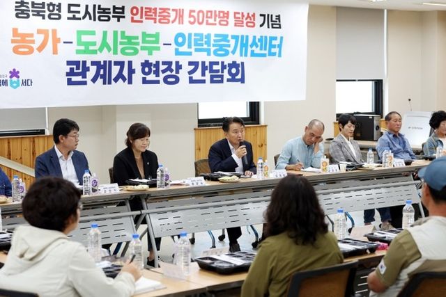 김영환 지사는 인력중개 50만 명을 기점으로 10월 16일 중부권 ‘도시농부와의 현장간담회’를 개최하여 개선 방안에 대한 의견을 청취했다. 향후에도 남부권, 북부권에서 도시농부와의 현장간담회를 이어갈 계획이다.