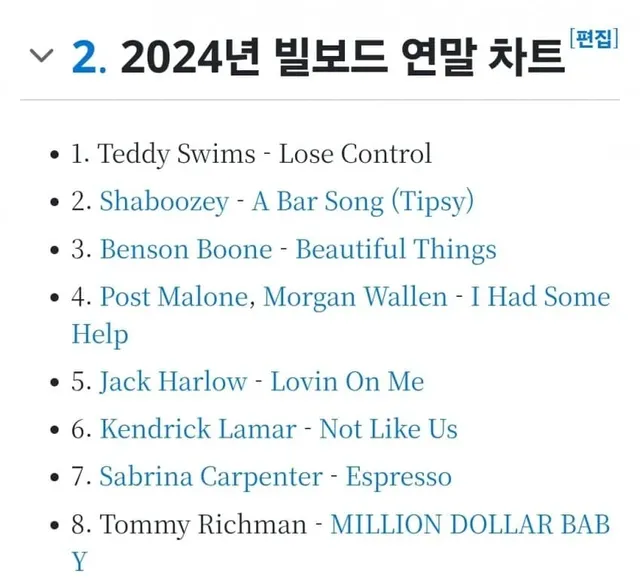 2024년 한해 빌보드에서 가장 성공한 곡 1위로 선정됨