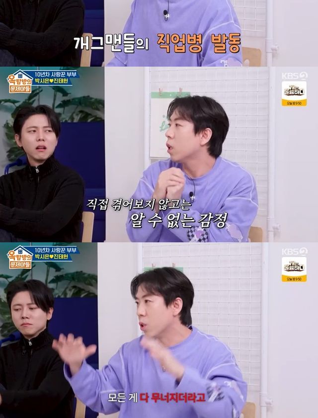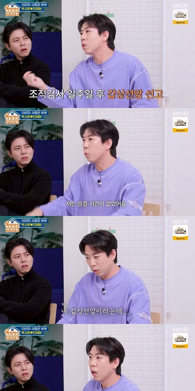 16일 방송된 KBS 2TV '옥탑방의 문제아들'에서는 갑상선암을 3개월 만에 극복한 배우 진태현과 그의 아내 배우 박시은이 출연했다.