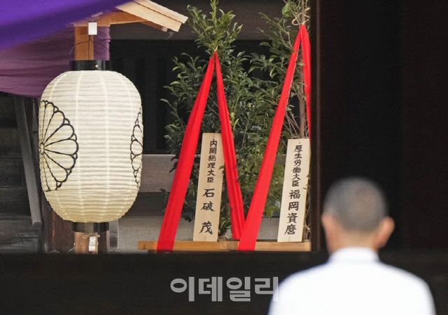 교도통신에 따르면 이시바 총리는 이날 시작하는 추계 예대제(例大祭·제사)를 맞아 ‘내각총리대신 이시바 시게루’ 명의로 ‘마사카키(비쭈기나무)’라고 불리는 공물을 봉납했다. 이시바 총리는 지난해 10월과 올해 4월 일년 두 차례 예대제 기간에도 야스쿠니 신사에 직접 참배하지 않고 공물만 봉납했다.