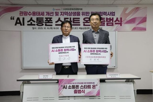 마포구는 10월 16일 오후 4시, 레드로드예술실험센터 2층 세미나실에서 ‘AI 소통폰 스타트 온(Start ON)’ 협력사업 출범식을 열고 외국인 관광객과 상인의 소통 강화를 위한 민관 협력의 첫발을 내디뎠다.
