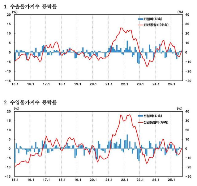 수입물량지수는지난 2022년 8월(15.7%) 이후 3년 1개월만에, 수출물량지수는지난해 1월(17.4%) 이후최대상승폭을보였다.