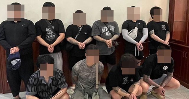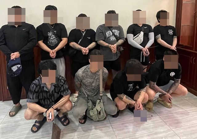 사진 속 한국인 용의자들은 검은색 티셔츠 등 일상복 차림으로 벽 앞에 서 있거나 바닥에 앉아 경찰 조사를 기다리고 있다. 대부분 슬리퍼를 신었고, 일부는 무표정한 얼굴로 고개를 숙인 모습이다.