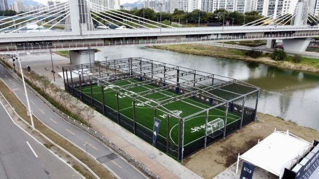 아디다스코리아가 서울시와 '서울아 운동하자' 사회공헌사업의 일환으로 재개장 한 동대문구 휘경2수변공원 풋살장. © 아이다스코리아