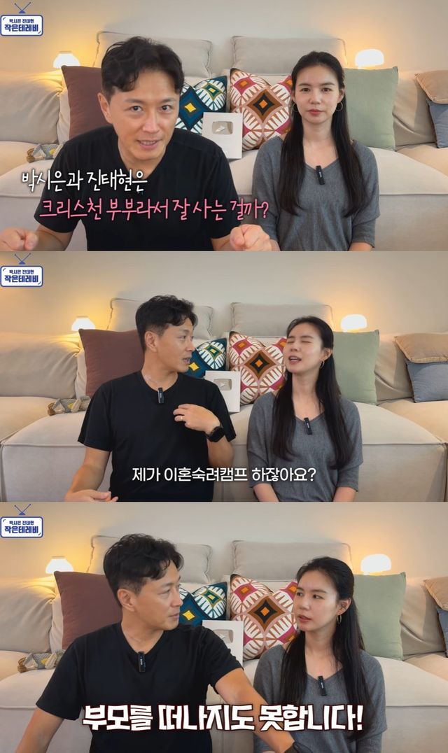 이날 진태현은 "우리는 크리스천 부부이기 때문에 잘 사는 게 아니다. 둘 다 부모를 떠났기 때문에 잘 사는 것"이라고 강조했다.