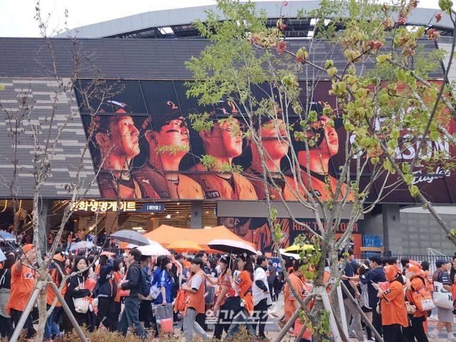 대전에서 2018년 이후 7년 만에 열리는 가을야구. 비는 불청객이다. 하지만 한화팬들은 경기장을 가득 메우며 축제를 즐길 준비를 마무리 했다. 서구에서 찾은 이민형 씨는 "비가 와서 오히려 평생 기억될 수 있는 날이 될 것"이라며 웃었다.